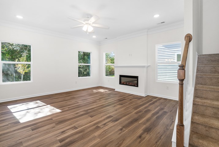 - An open floor plan with nine-foot ceilings on the first floor