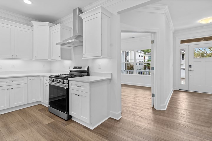 - Custom-designed kitchen cabinetry with soft-close cabinets and drawers and optional crown molding